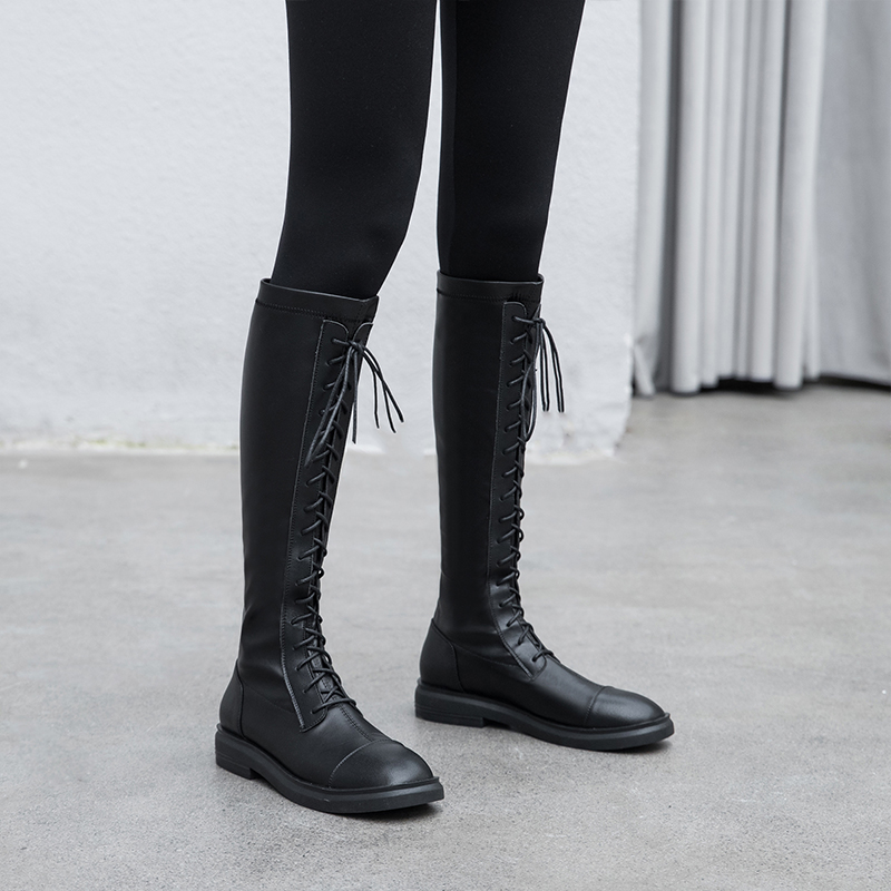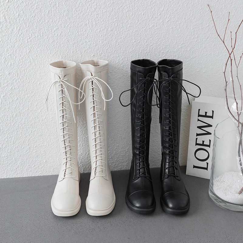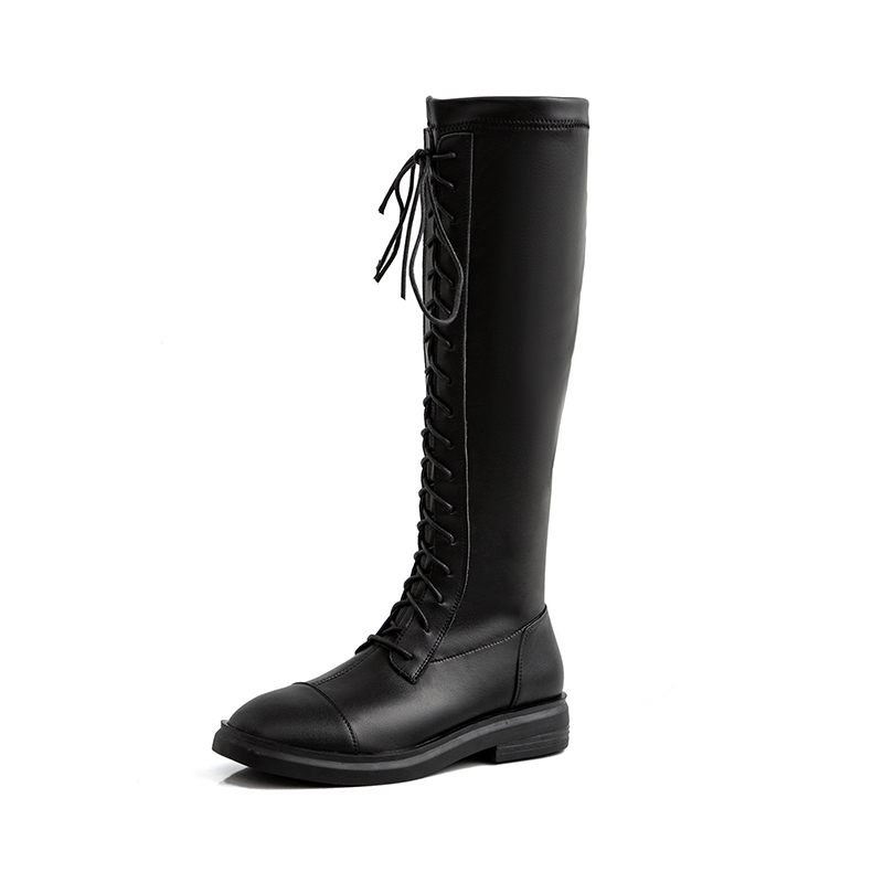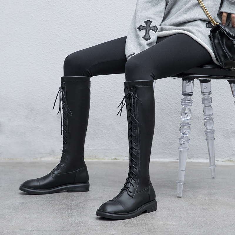 Riding boots Children 2021 Autumn only Knee-length Boots Flat Bottom Lace Elastic Long Cylinder High Cylinder Boots Small New