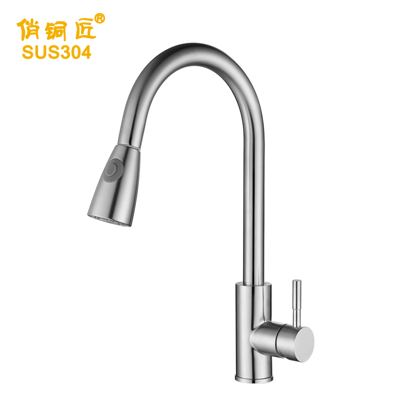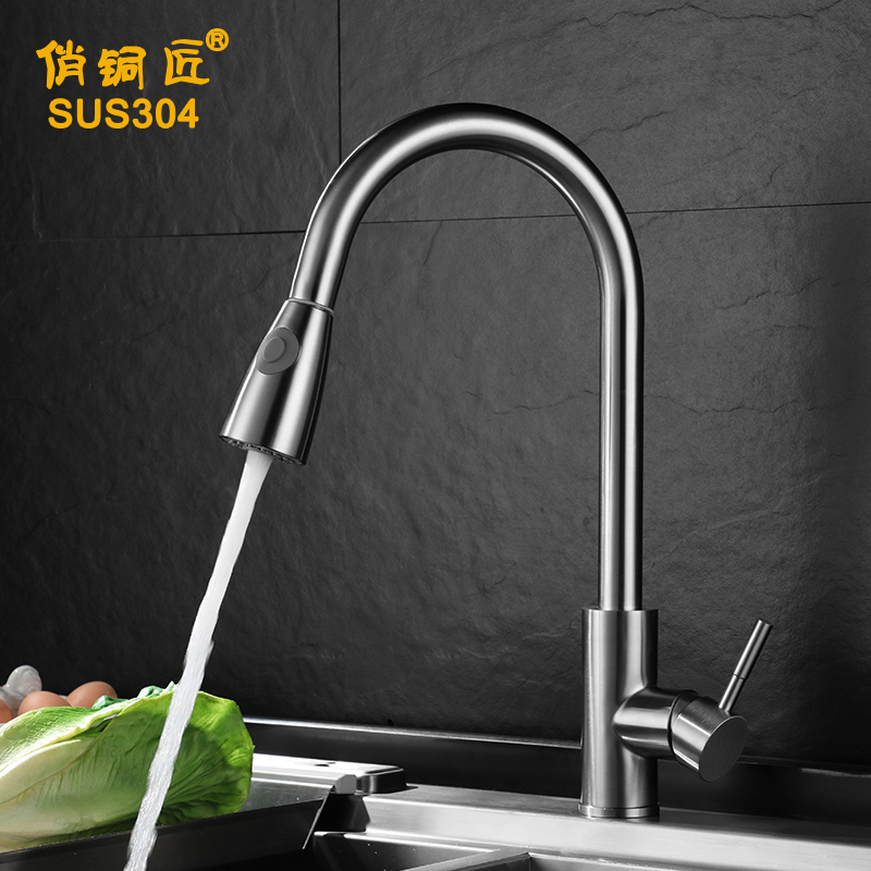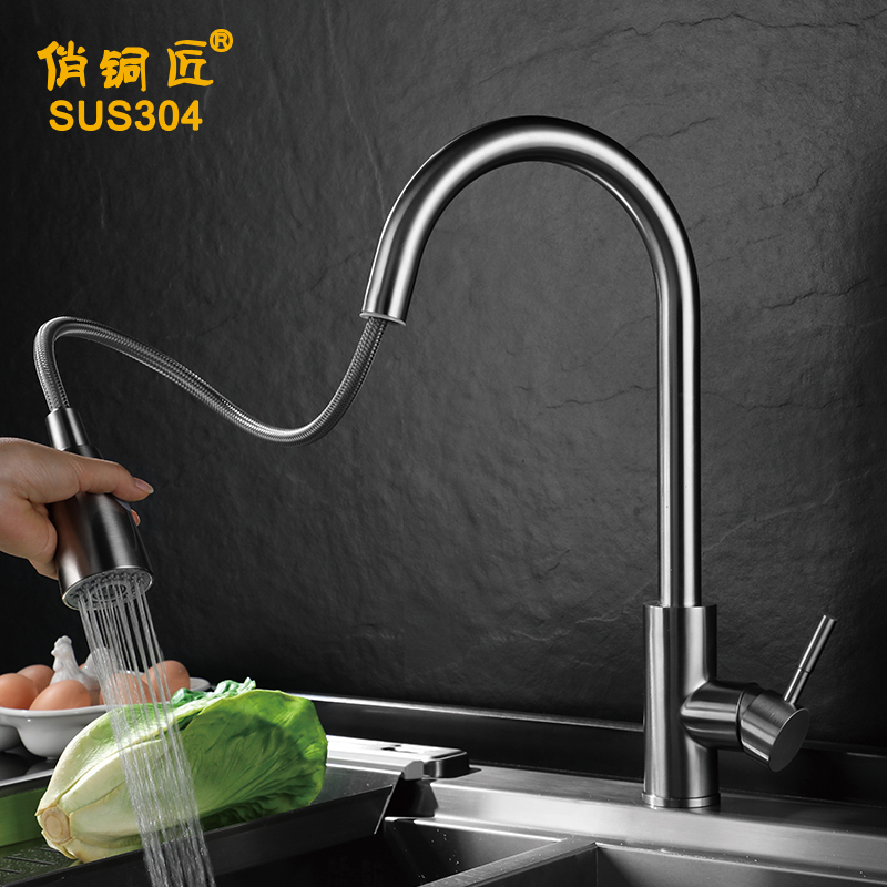 Kitchen pull tap cool and hot household sink 304 stainless steel all copper dishwash pool can be scaled