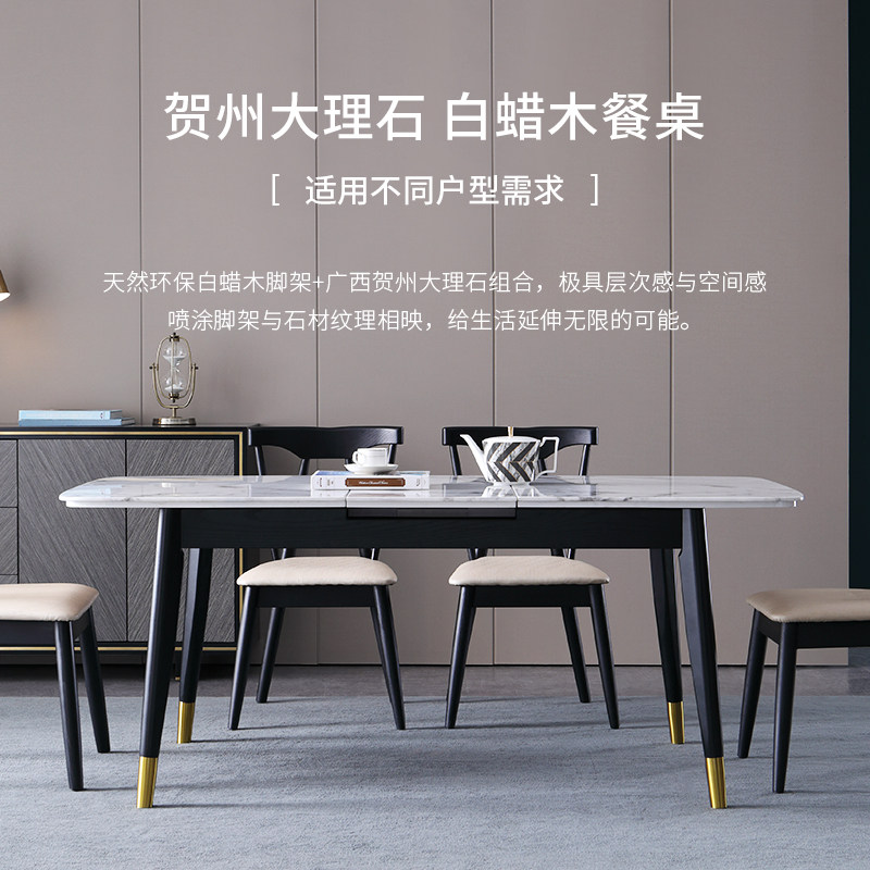 Nordic marble telescopic dining table Simple modern rectangular 2 4 6 people with a dining table Solid wood dining table