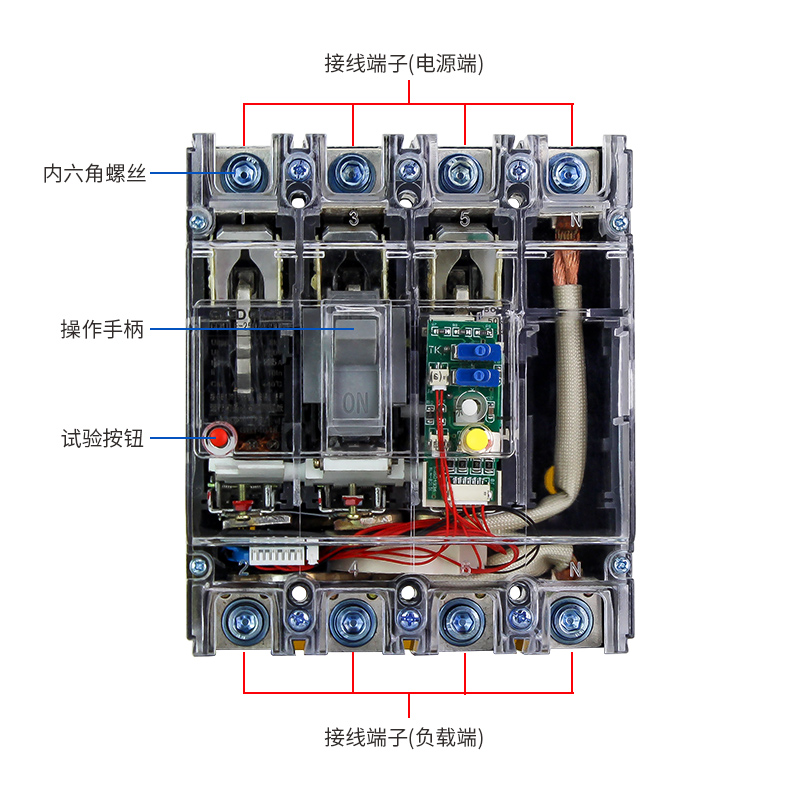 Three-phase four-wire molded case leakage circuit breaker 4P100A Transparent protector 250A400A Air switch 630a