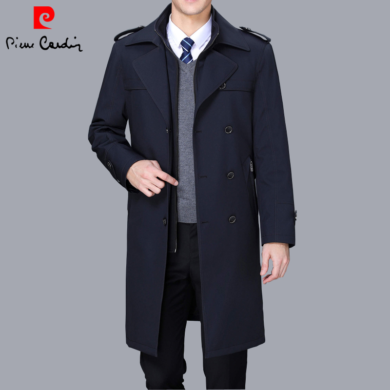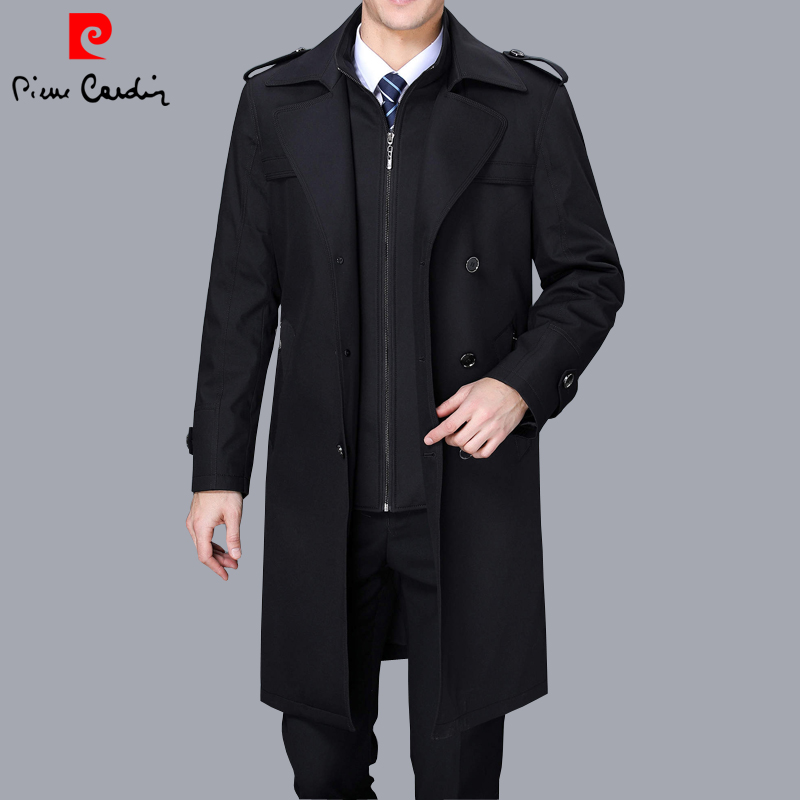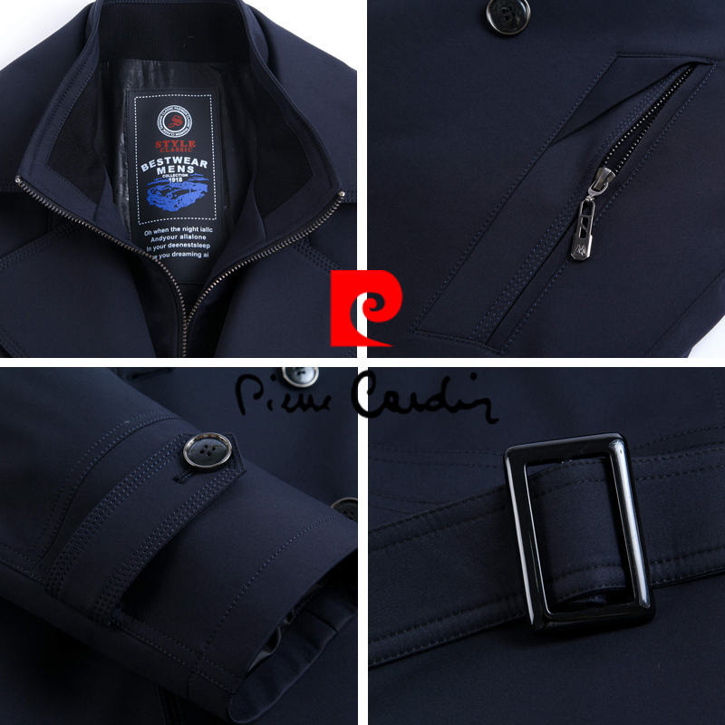 Pierre Cardin men's windbreaker mid-length dad autumn and winter coat thickened business casual middle-aged large size top