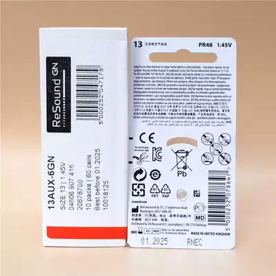 British imported ReSound GN Resoundda A13 hearing aid mercury-free zinc air battery PR48 1 45V
