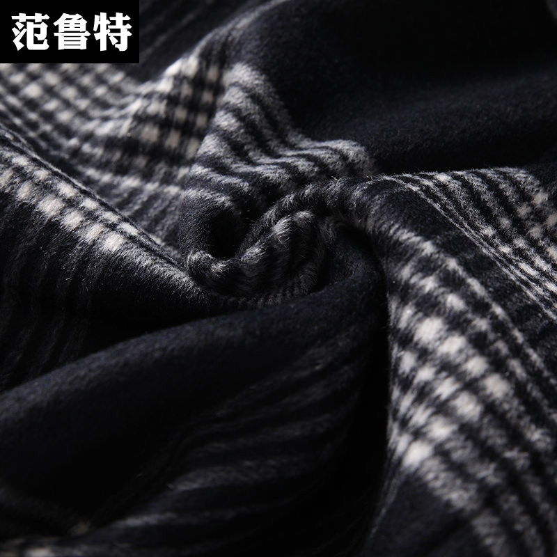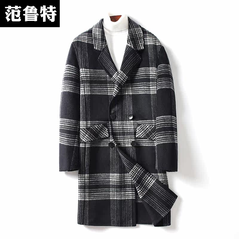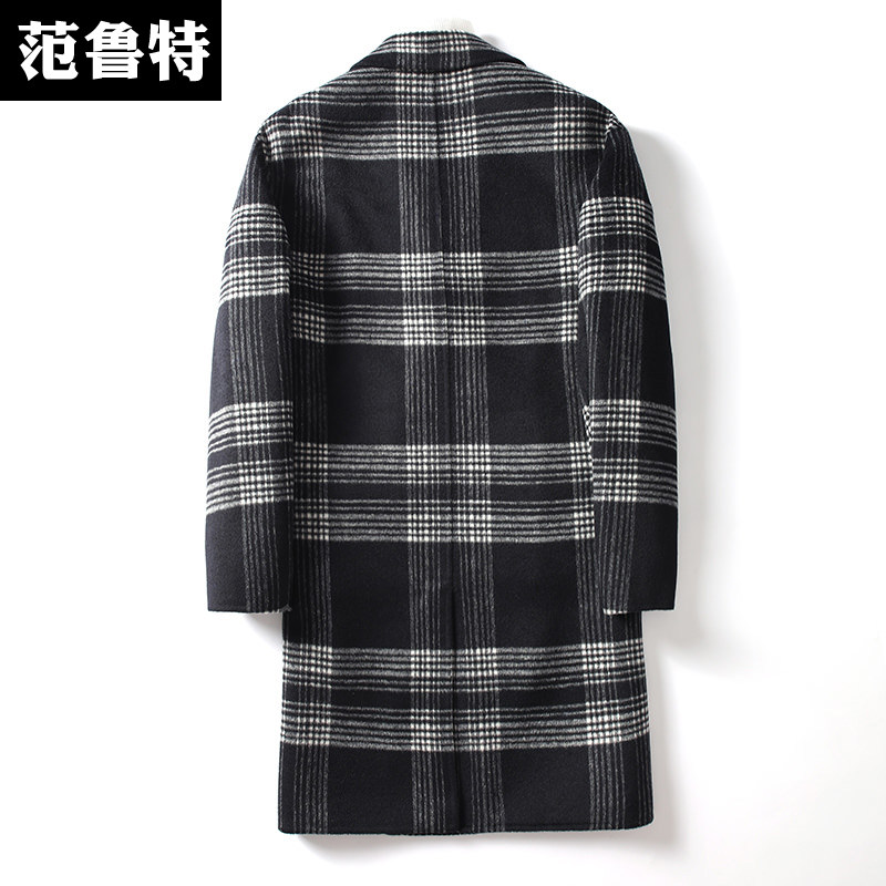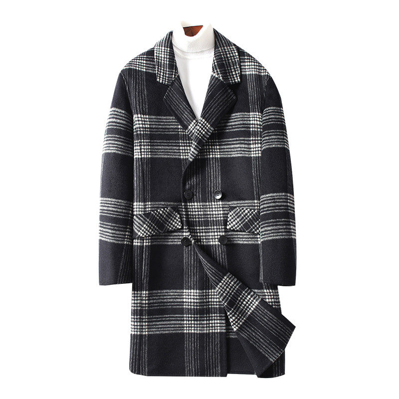 Autumn and winter double-sided woolen coat men's woolen woolen houndstooth check no cashmere thickened mid-length coat windbreaker