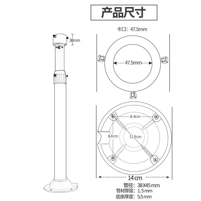 Ball machine suction top hoisting lengthened telescopic monitoring bracket 30-60 60-120cm100-200cm150-300cm
