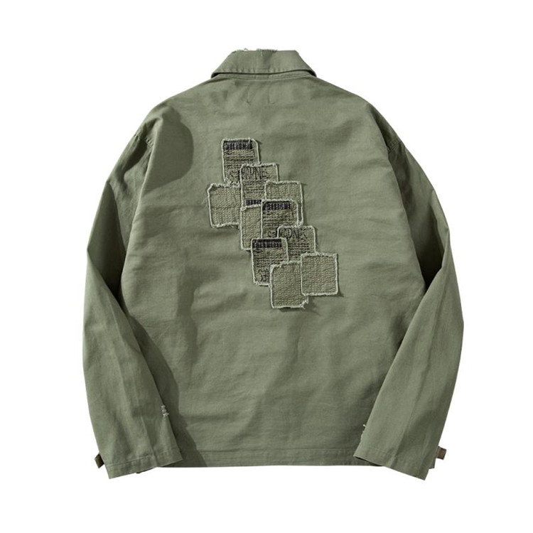 Tide card Yu Wenledo Pocket Tooling Jacket Man Trend Breaking Hole to be Old Autumn Winter Retro Student Coat Man
