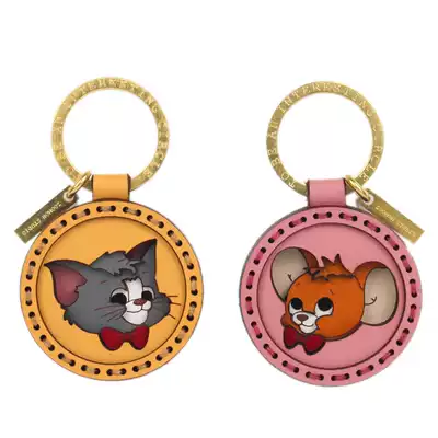 ZOOMON handmade leather cat and mouse keychain Tom Jerry pendant couple birthday gift lettering customization