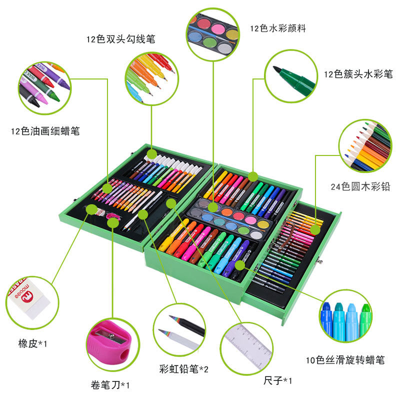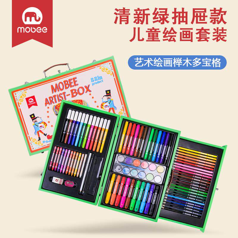 mobee children's wooden brush gift box for primary school students Watercolor stroke painting tool set Art painting graffiti