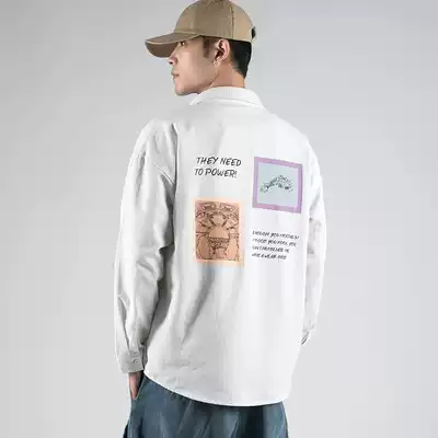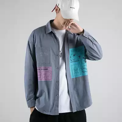 GOOMIL LEE Spring Autumn men's casual shirt jacket youth trend printing tooling long sleeve men's shirt