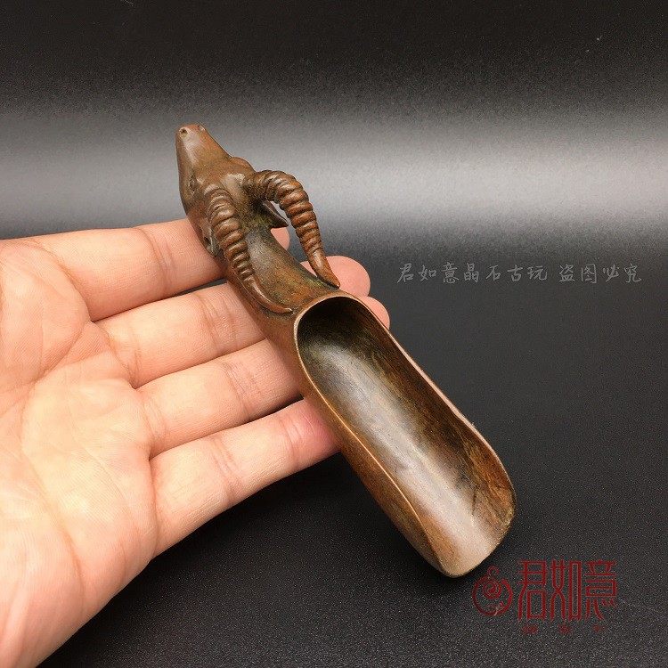 Seiko copper antelope head tea spoon tea spatula antique tea small spatula copper tea spatula retro divine beast tea set tea ceremony supplies