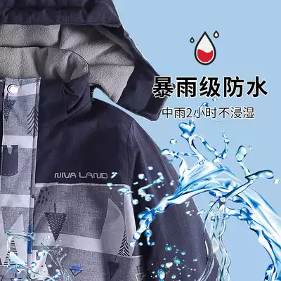 Neveland 2020 Winter new boy plus velvet thickened 3 times warm children waterproof ski suit