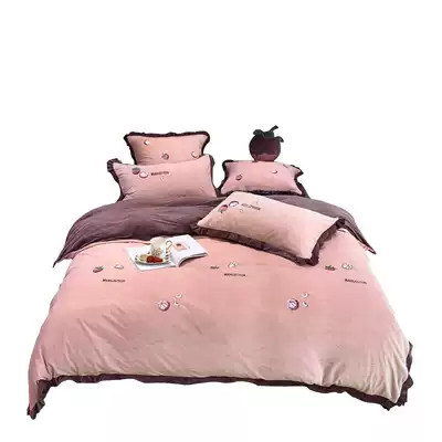 Winter thickened baby velvet flannel four-piece double-sided velvet coral velvet quilt cover cute girl heart bedding