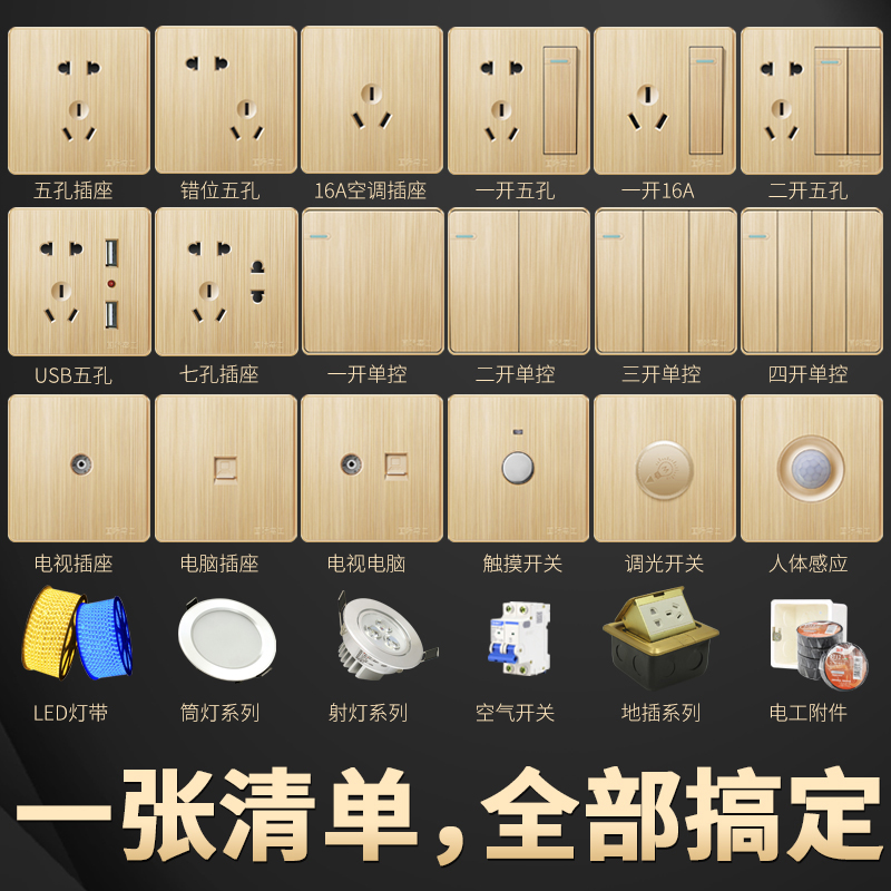 International electrician 86 type four-open yuba switch universal lamp heating 4-open household bathroom four-in-one powder room switch