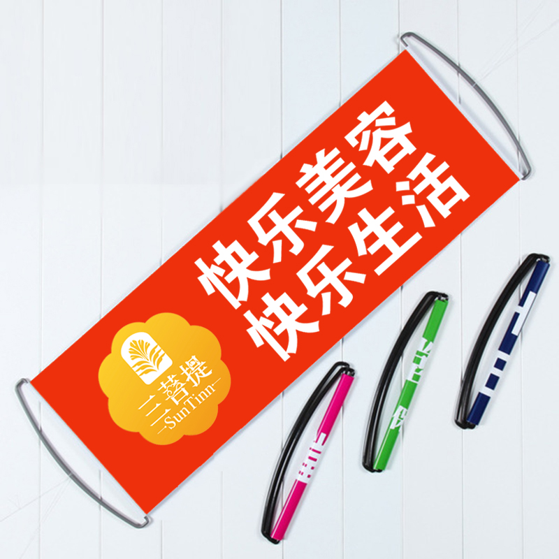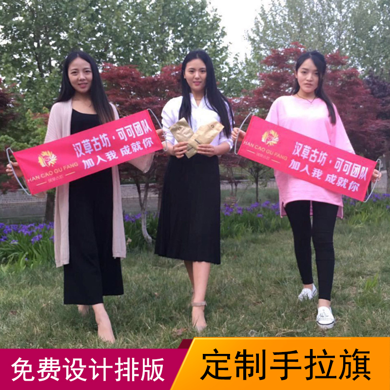 Hand-pulled flag custom logo printing handheld micro-commercial thick satin hands with canvas strip small banner to order group flag doctor