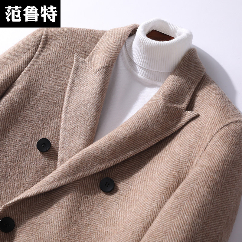 The autumn and winter bifacial, the men's wool for men without cashmere thickening long version Nicson over the knee jacket windsuit