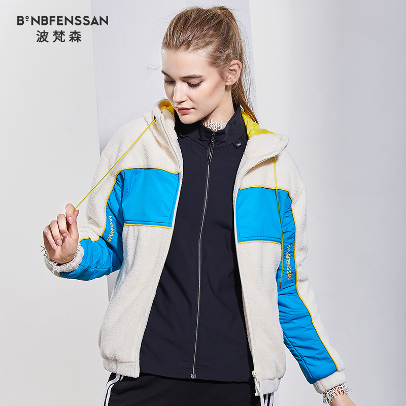 Bofansen women's outdoor fleece hooded sweatshirt Korean BF wind stitching contrast color autumn and winter windproof warm jacket tide