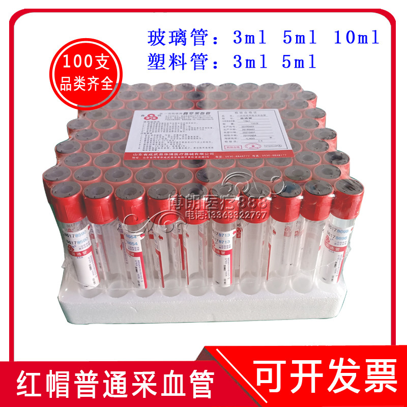 Blood collection tube medical non-added tube needle 3ml5ml10ml disposable negative pressure vacuum biochemical tube red hat ordinary tube