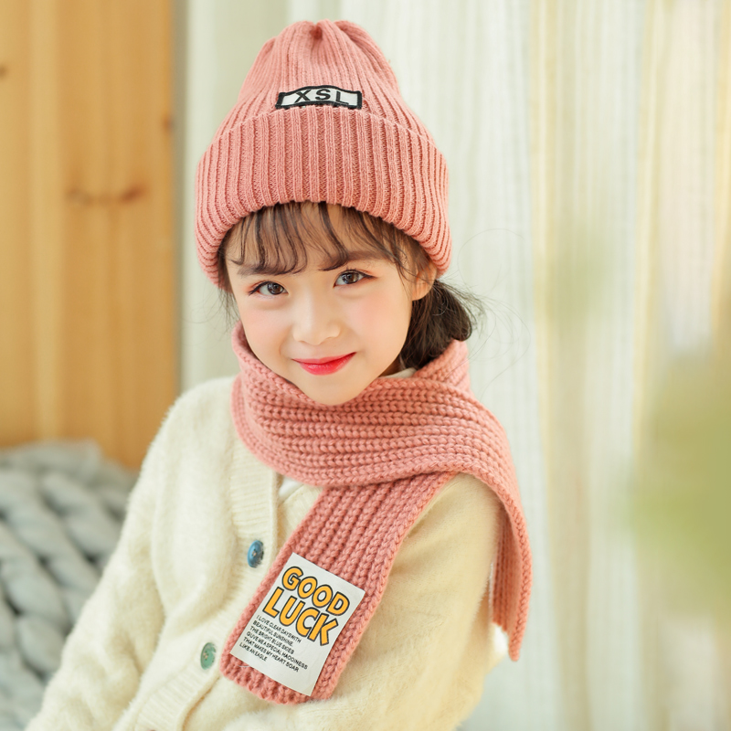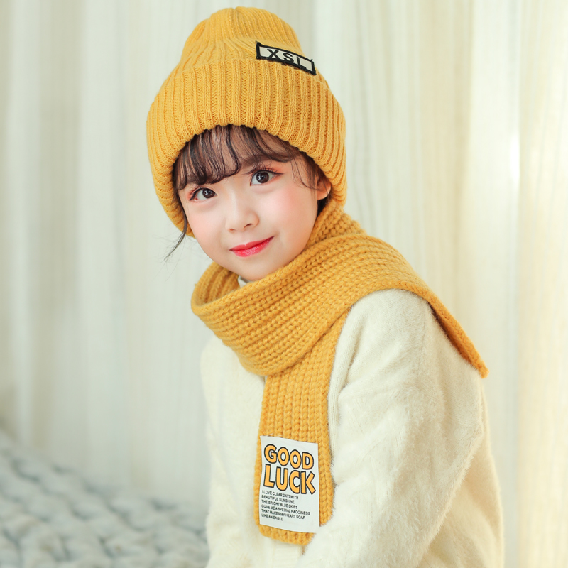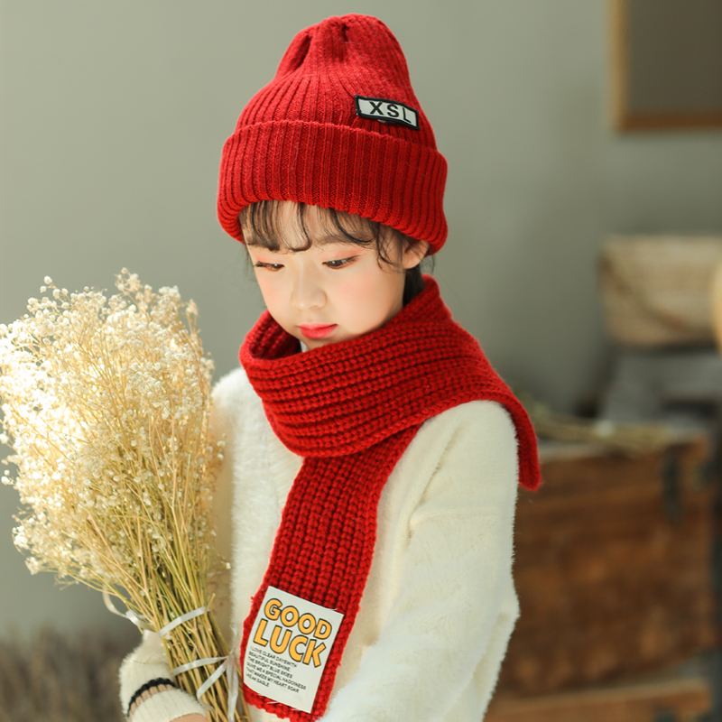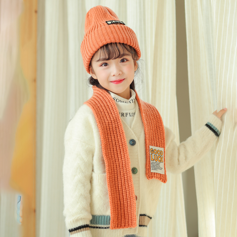 Children's hat scarf suit winter boy girl warm knit wool line hat scarf two sets of Korean version wave