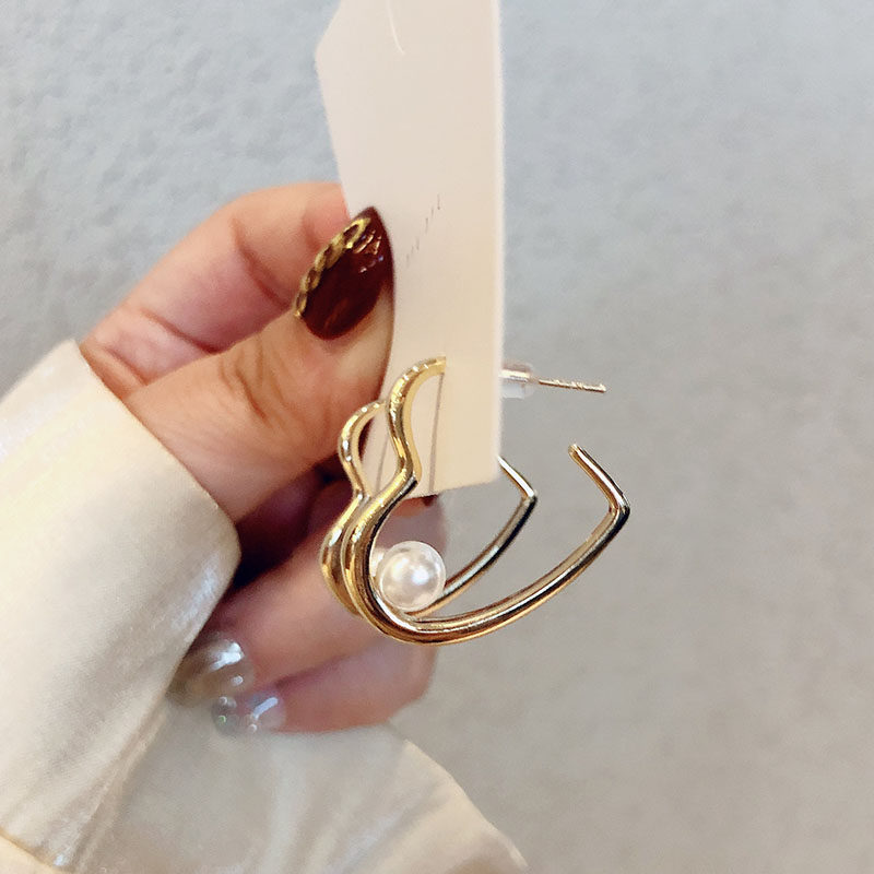 New earrings 2021 trendy Korean net red female design love pearl earrings female simple Dongdaemun ear acupuncture
