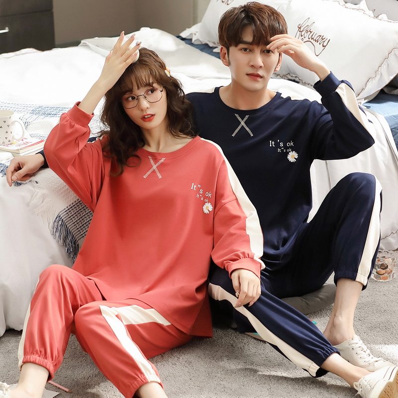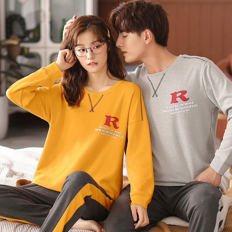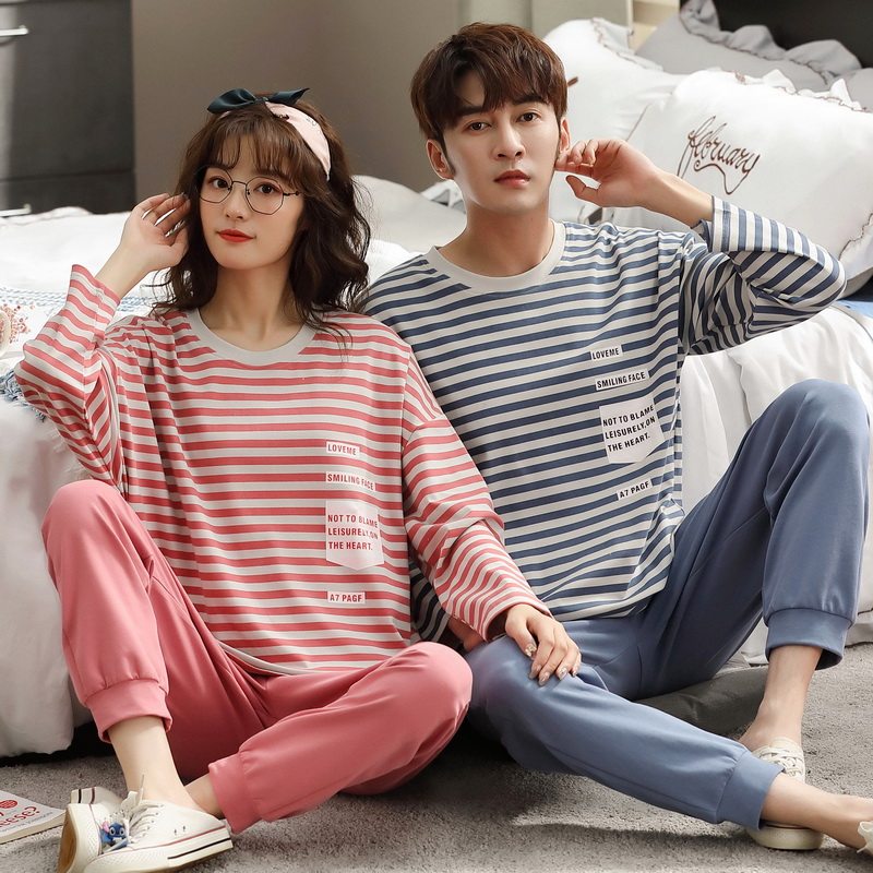 2021 New lovers pyjamas women's spring autumn style pure cotton long sleeve men's high-end summer all-cotton home suit suit