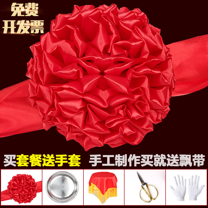 Opening of the moving big red flower ball New car New car The big red flower recognizes the wedding red embroidered ball opening ceremony to cut the colorful flower ball-Taobao