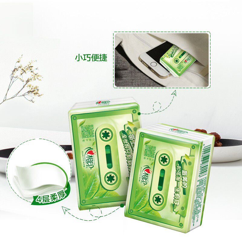Heart printing paper handkerchief tea language mini independent small bag type tissue wholesale portable cute napkin