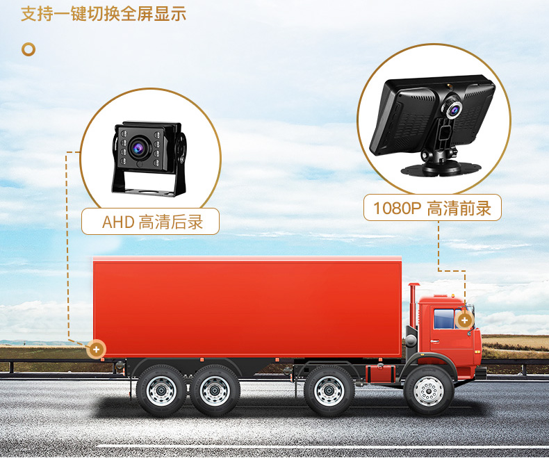 Truck driving recorder front and rear double lens 1080P non-light night vision reversing image double recording parking monitoring
