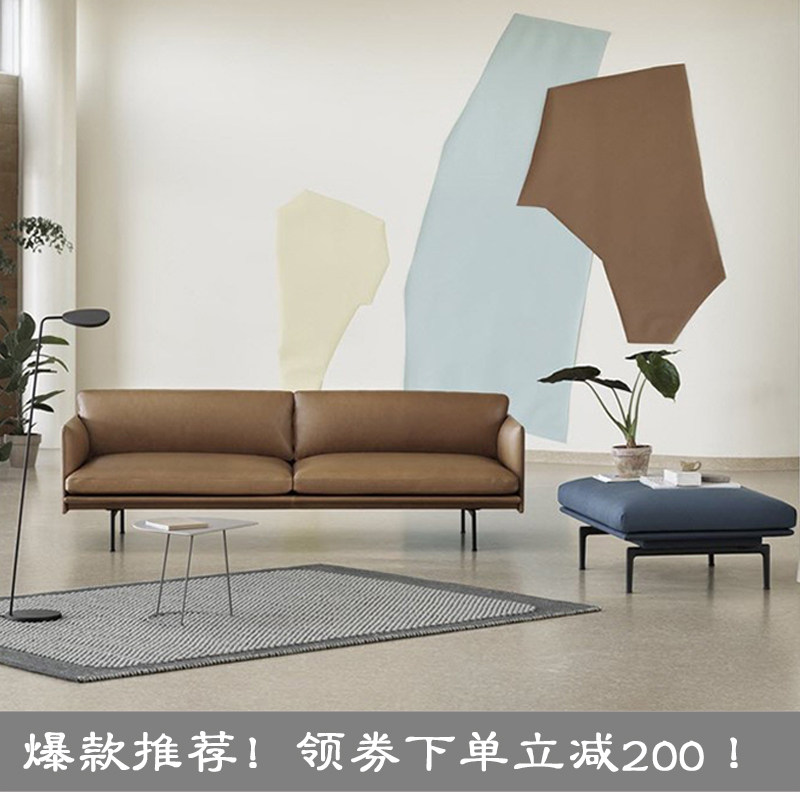 Danish designer loft Nordic light luxury oil wax leather sofa simple modern small living room three people