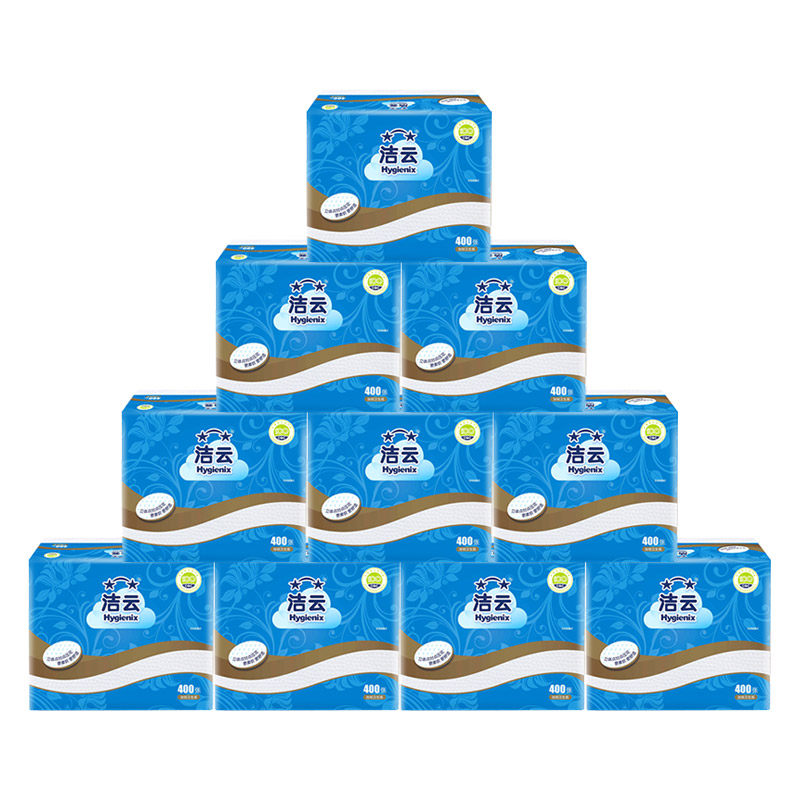 Jieyun flat paper 400 sheets of 10 packs of printed toilet paper toilet paper native wood pulp household toilet paper whole box