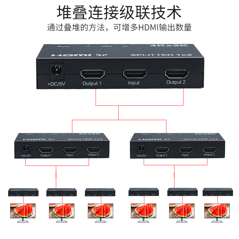 hdmi splitter one point two 4K high-definition video computer host display splitter 3D projector 1 in 2 out