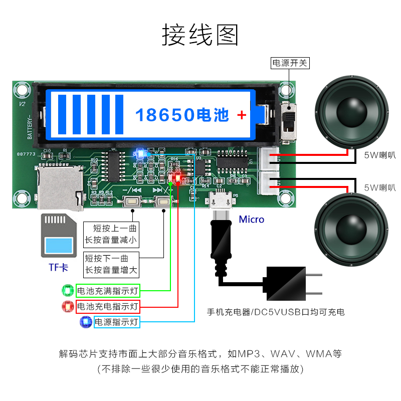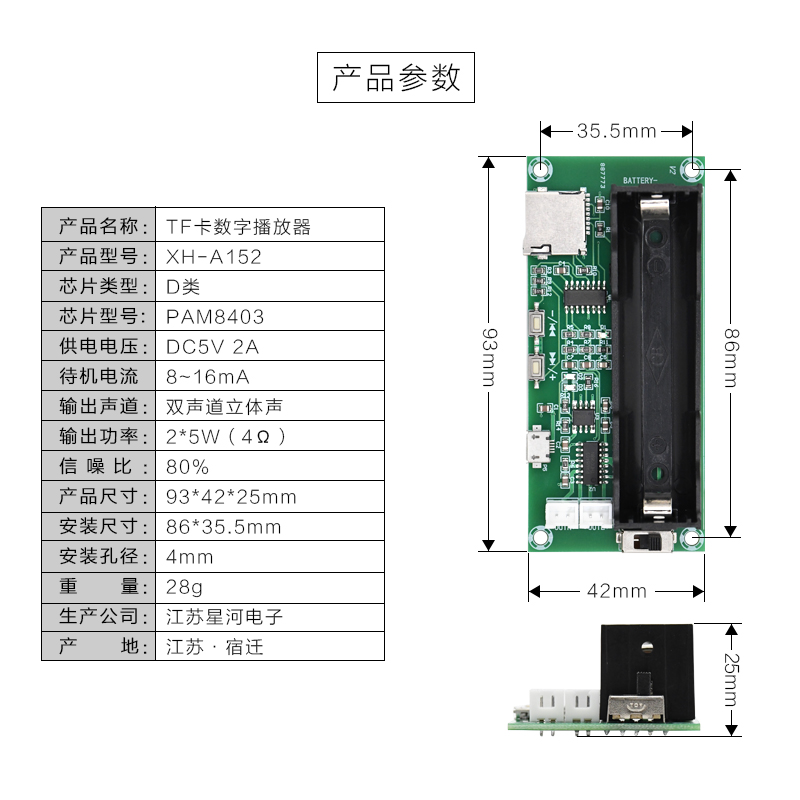 XH-A152 small power TF card decoding board PAM8403 amplifier board player modified small speaker