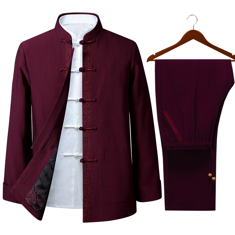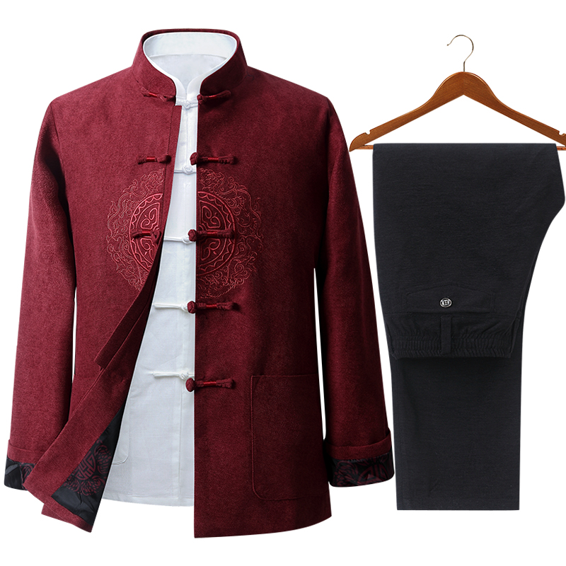 Spring and autumn Tang clothing men's long-sleeved thickened Chinese cotton middle-aged father winter clothing Chinese style Hanfu jacket jacket