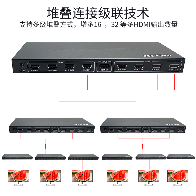 hdmi splitter one point 8 computer display 1 in 8 out frequency division extension cable HD 4K TV film one point eight