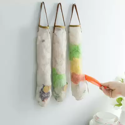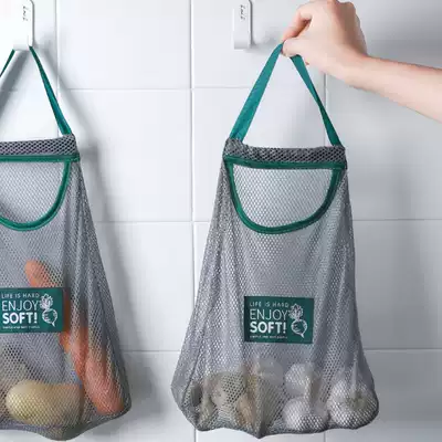 Hanging fruit and vegetable storage mesh bag portable handle kitchen multifunctional hollow garlic ginger onion breathable hanging bag