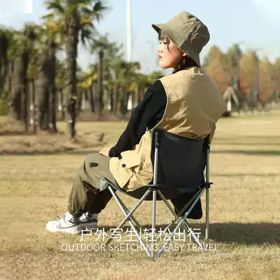 Outdoor sketching folding chair Portable backrest Ultra-light camping chair Comfortable thick iron tube large, medium and small beach chair