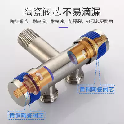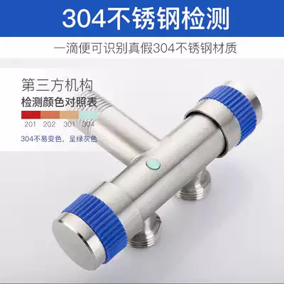 Stainless steel three-way triangle one in two out valve water diversion valve with switch washing machine faucet shunt