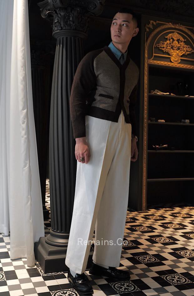 Remains melinu wool two-color cardigan inserts in traditional American retro college IVY Cardigan