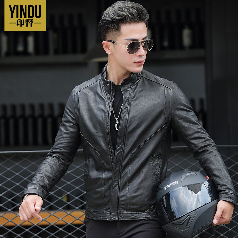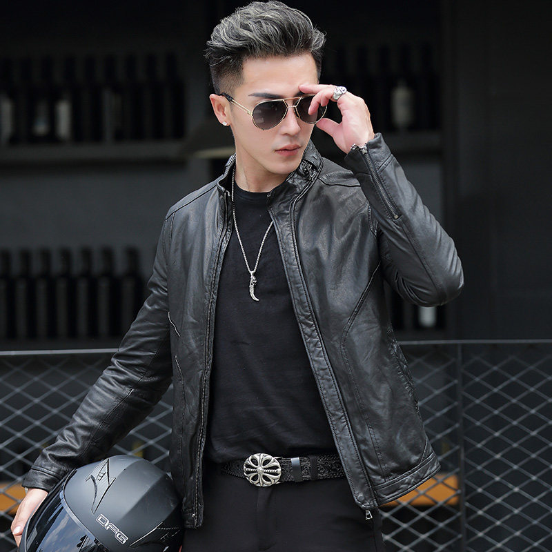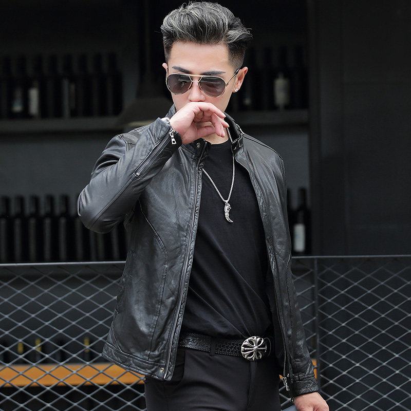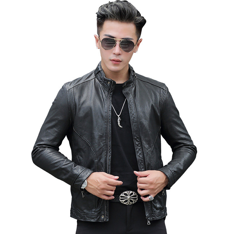 Henning genuine leather leather clothes men stand up for short and casual locomotive leather jacket Chaumen Tan Sheep Leather leather Outer cover
