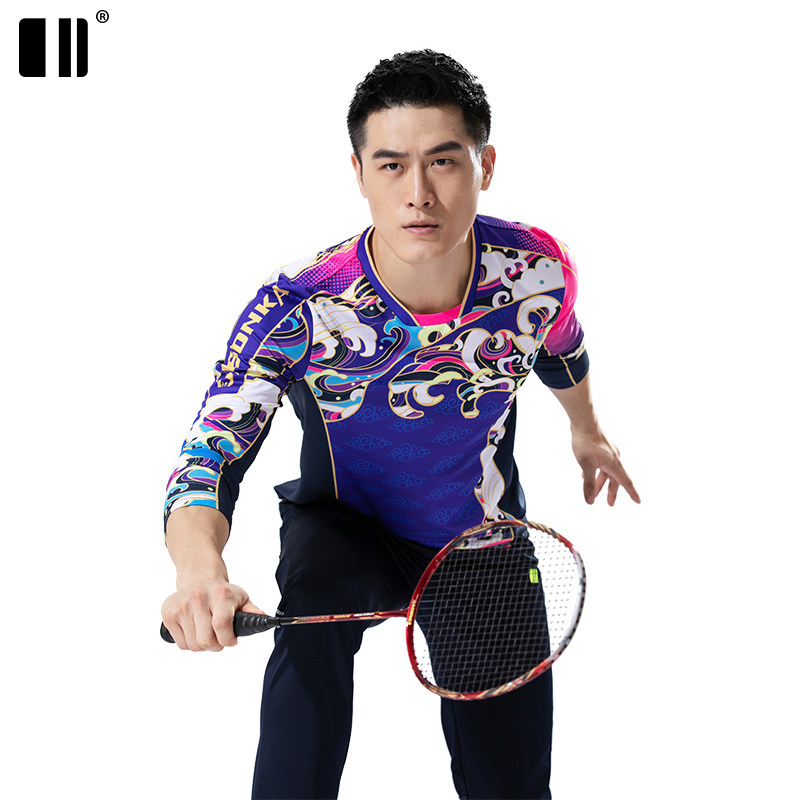 (Quick-drying) autumn and winter new single and double badminton clothing long-sleeved top women's classical wind tennis volleyball clothing