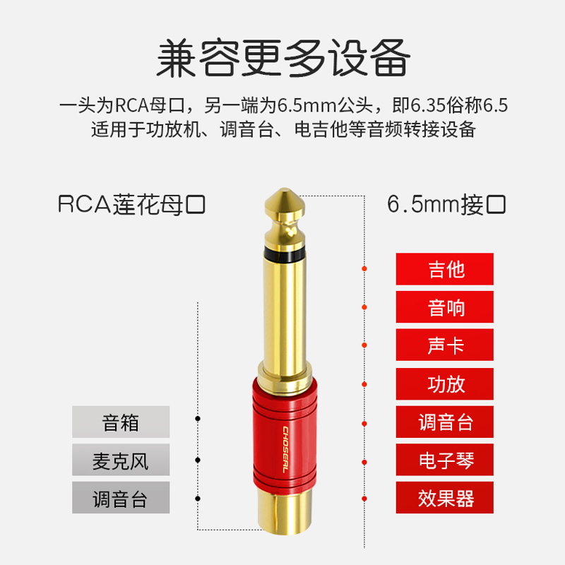 Akiya 6 5-Turn Lotus Head Sophomore Audio Converter 6 35 Rotated RCA Lotus Converter Microphone Microphone Converter Head Guitar Music Sound