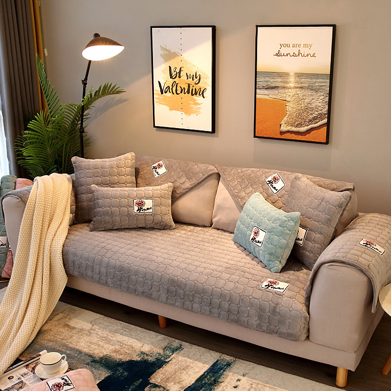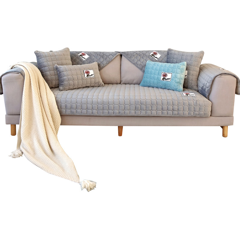 Winter plush sofa cushion non-slip thickened flannel simple modern winter solid wood leather sofa cover back towel