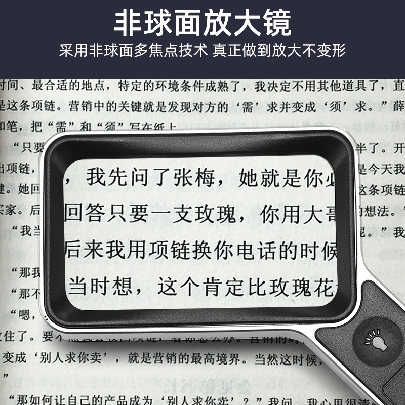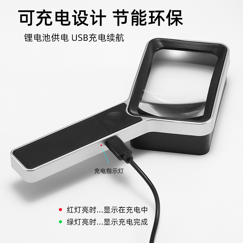 Yiyu 30x square magnifier HD high power handheld touch switch with LED light 60 Children, students, elderly reading 100 Aspherical multifocal rechargeable magnifier 1000
