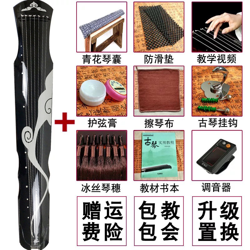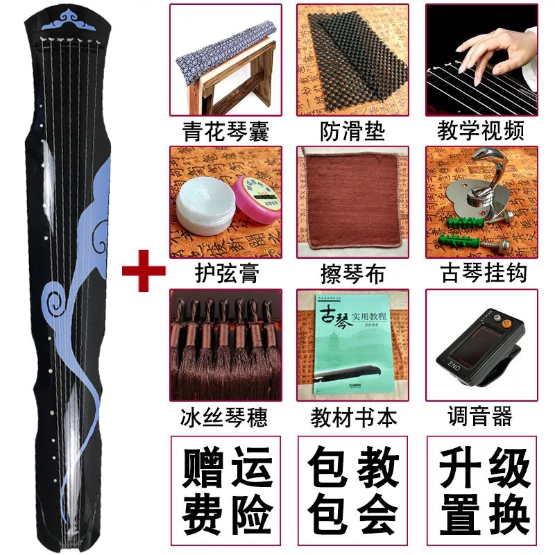 Guqin + blue moiré + basic accessories guqin + blue moiré + full set of accessories guqin + silver gray moiré + basic accessories guqin + silver gray moiré + full set of accessories