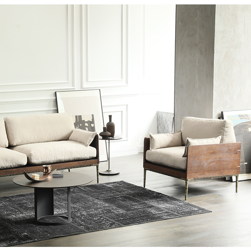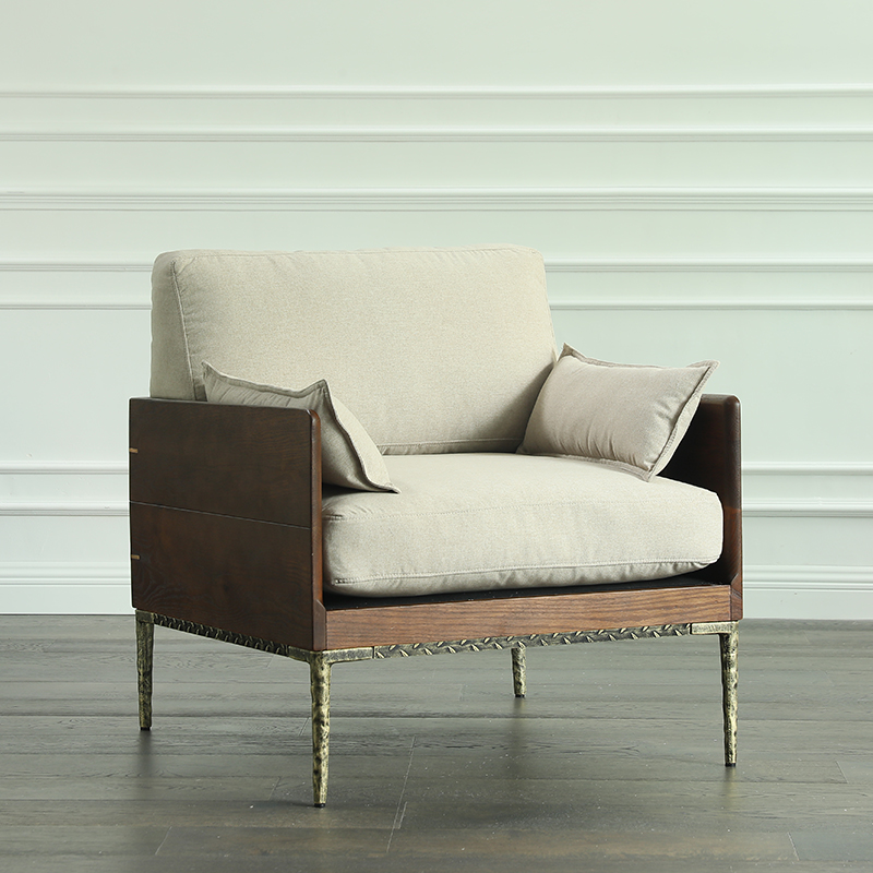 Single seat sofa retro Nordic British expression imported oak YUZU homestay fabric sofa "tree cheep 」