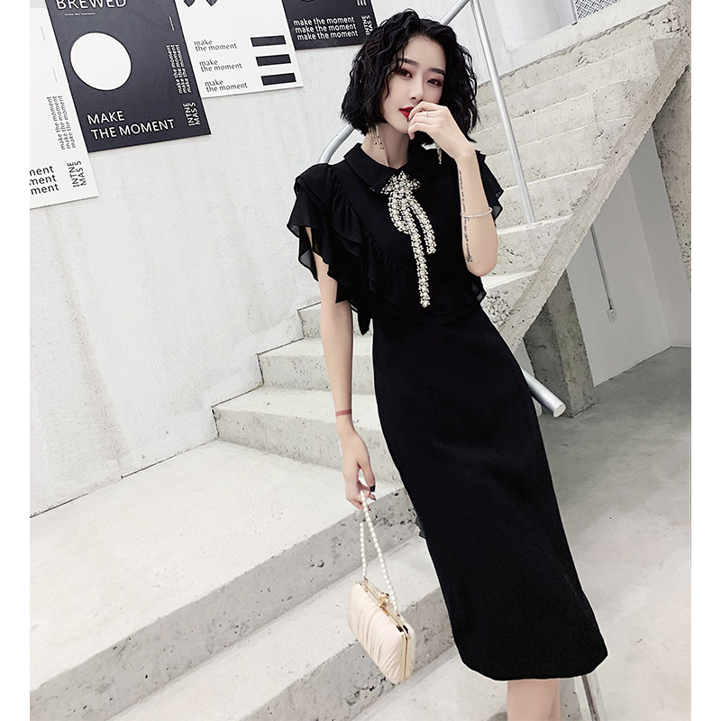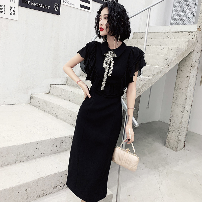 Black banquet evening dress skirt women 2021 new temperament socialite light luxury niche socialite high-end can usually wear summer
