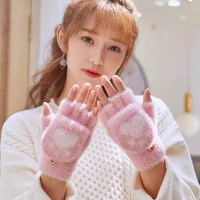 Cat claw gloves female winter Korean version plus velvet thickening cycling driving writing warm and windproof student cute cartoon clamshell