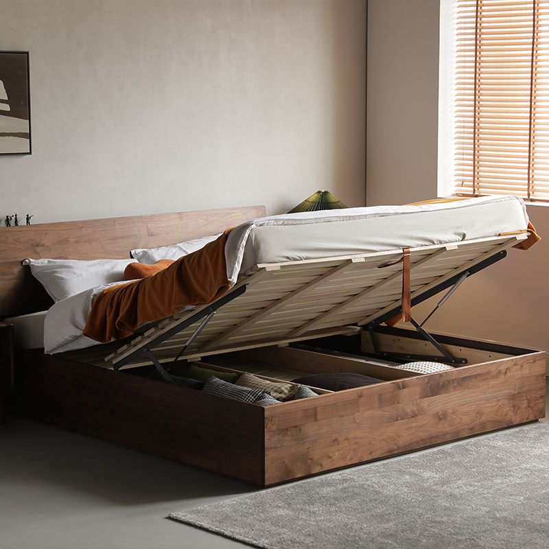 High-box storage beds Nordic all-solid wood walnut collection beds modern minimal double cherry wood custom furniture