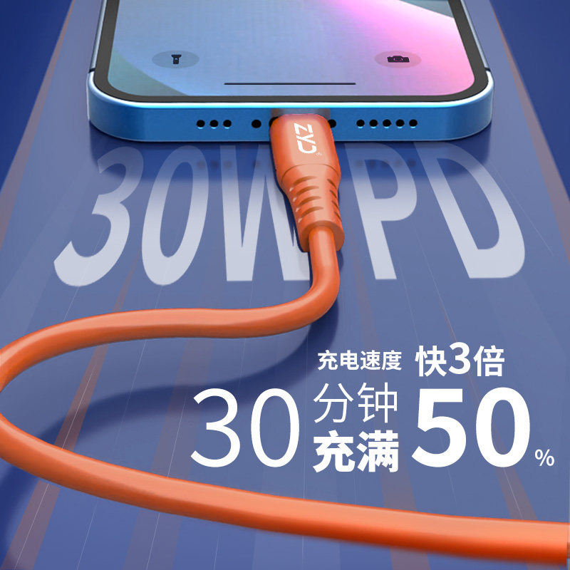 The guest apple pd data line 30w Fast charging line applicable iphone12pro mobile phone mfi certified support typec turn lightning vehicle xs elbow ip