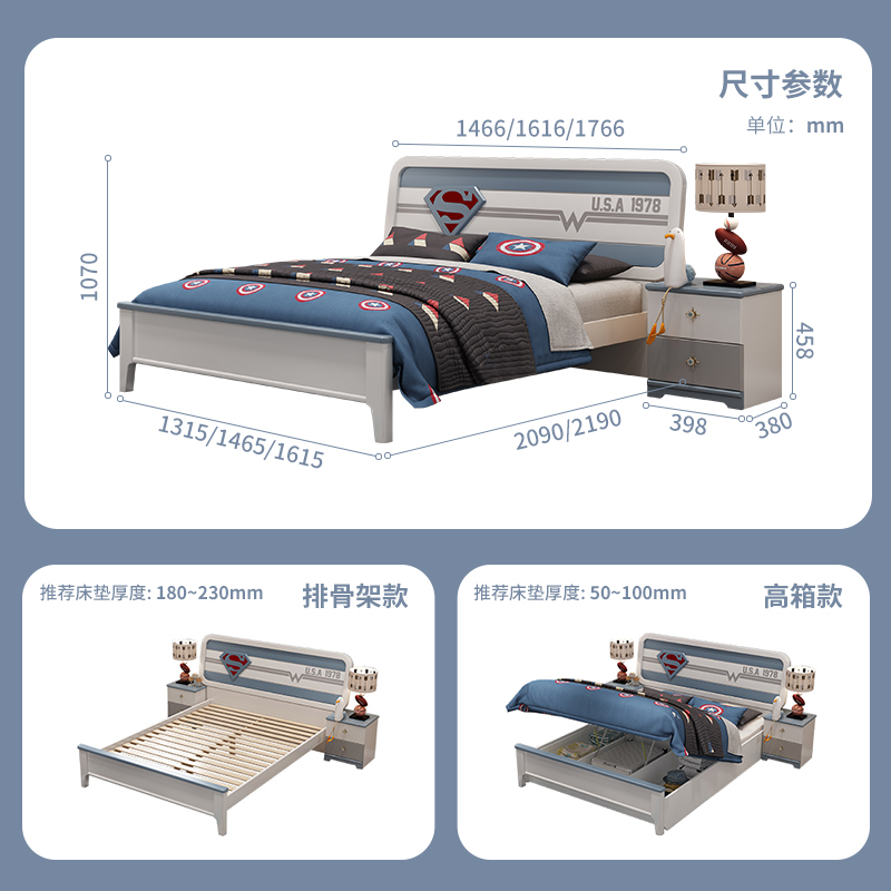 Superman bed Superman bed 3E brown mattress Superman bed head cabinet * 1 Superman bed head cabinet * 2 Superman bed head cabinet * 1 3E brown mattress Superman bed head cabinet * 2
