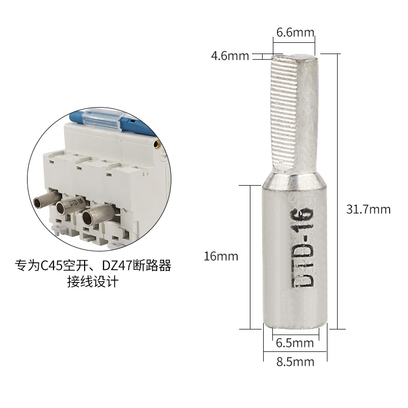Empty open copper pin DTD-10 16 25 35 square small circuit breaker leakage photovoltaic flat head copper tinned