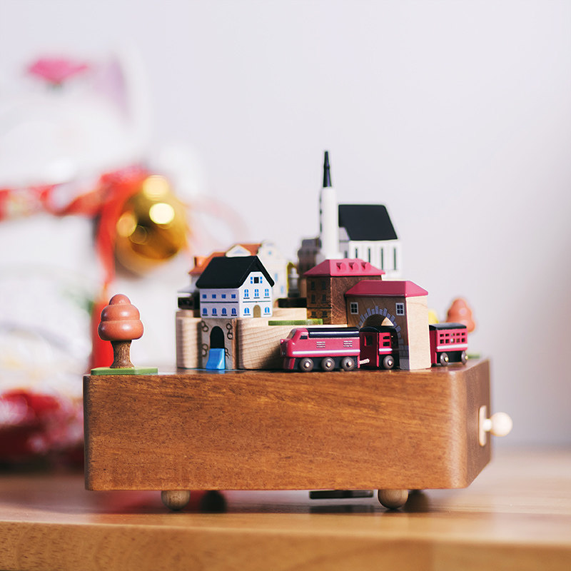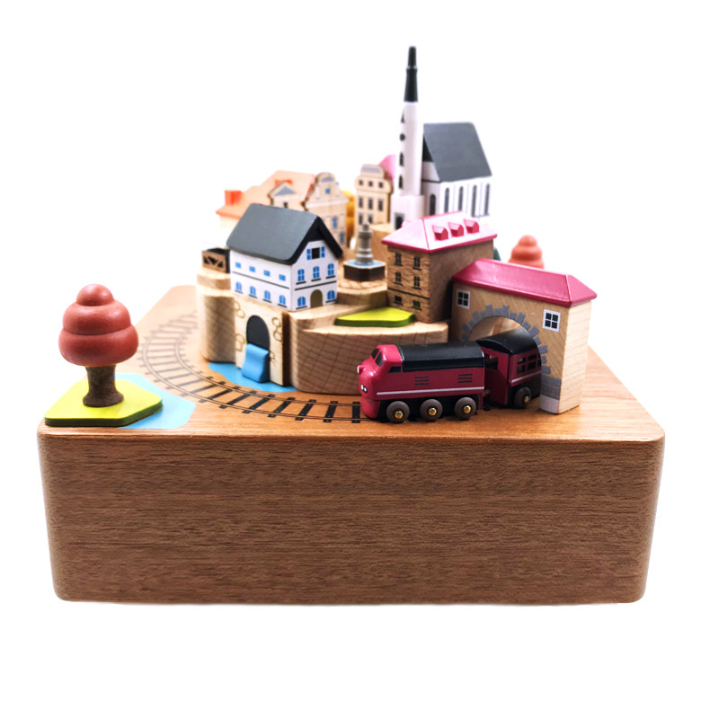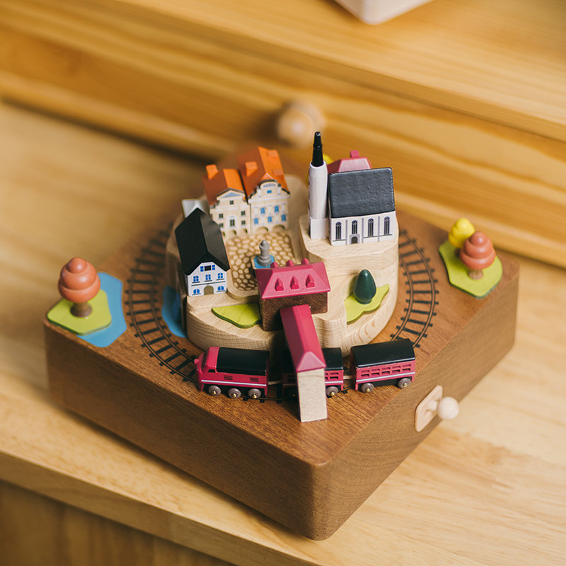 jeancard music box Wooden music box Rotating train autumn trip send girls lover birthday children